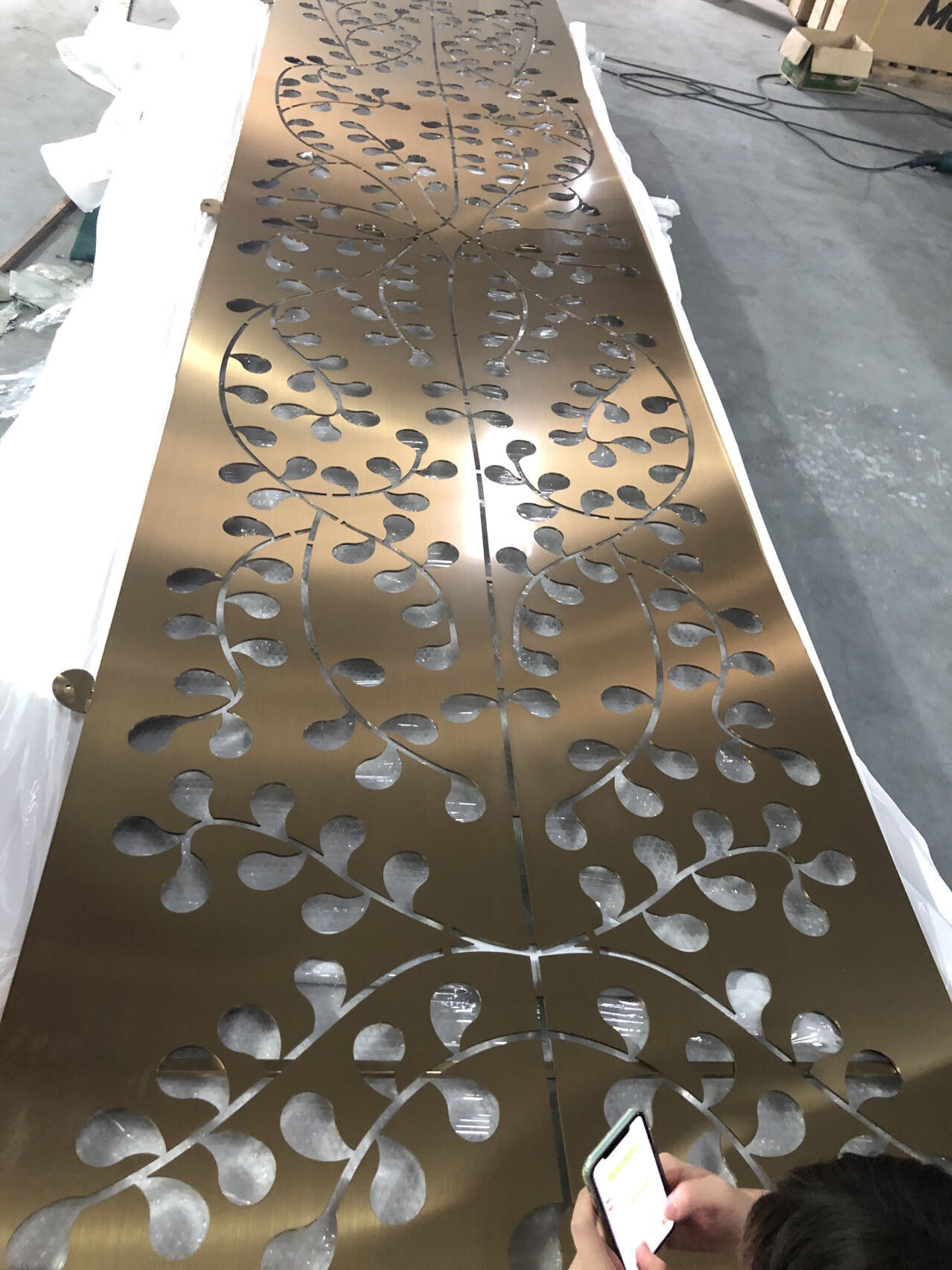 RAL powder coating, antique brass patina, PVD coating, vibration patterns — all in-house with strict QC.